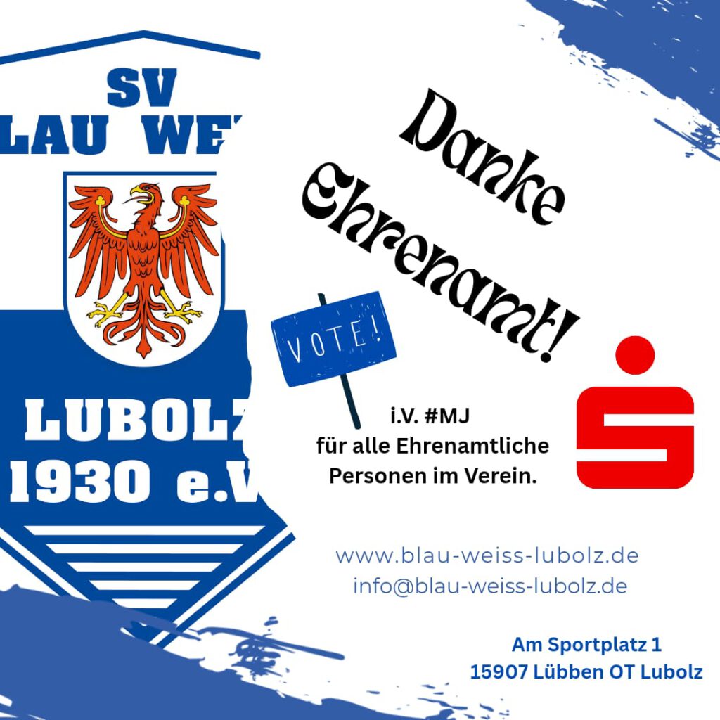 Von seiner Mannschaft wurde Martin, stellvertretend für @alle Ehrenamtler des Vereins SV Blau-Weiß Lubolz 1930 e.V. für die Förderaktion der Sparkasse-Finanzgruppe nominiert. Honoriert wird außergewöhnliches Ehrenamt mit bis zu 2.500,00 EUR für die Vereinskasse.