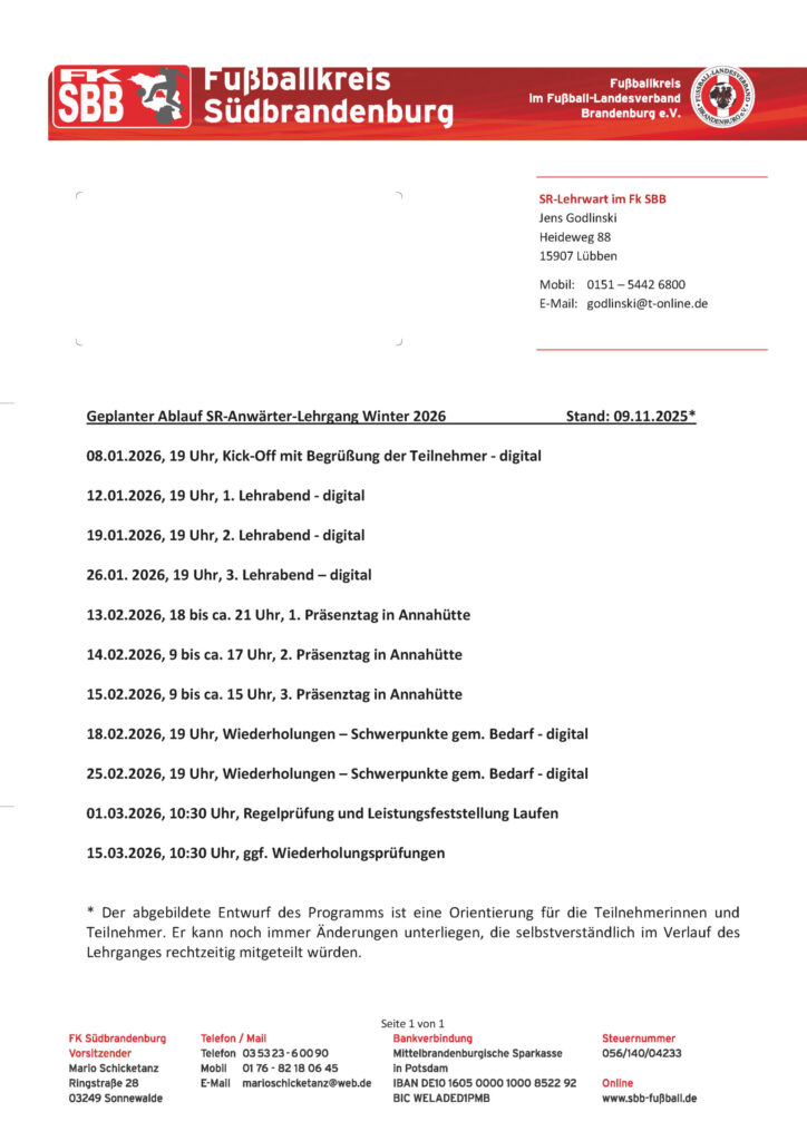 Am 30.09.2025 fand die Trainerversammlung des SV Blau-Weiß Lubolz statt. Zahlreiche Trainerinnen, Trainer und Verantwortliche aus allen Abteilungen folgten der Einladung des Vorstandes.
